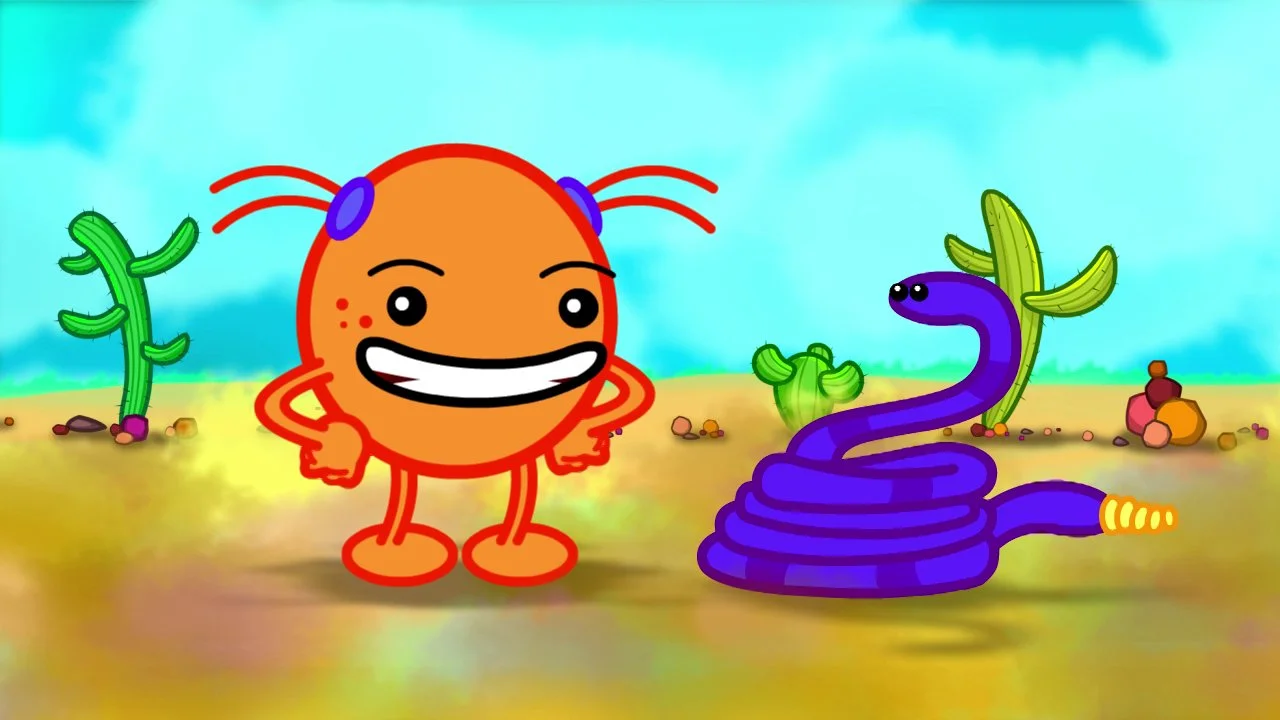 An animated short by Charlie Kothe. While strolling through the desert wilderness, a little orange girl runs into a very talented reptile. Sing along to the ABCs and get inspired to make your own balloon letter animals (but watch out for cactus!)